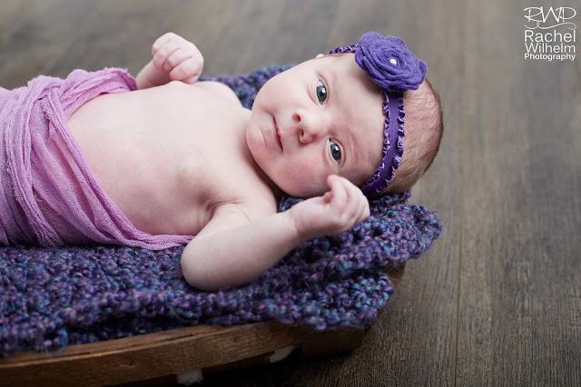 This sweet little girl was a week old when she came in for her session. We got Abigail all settled, but shortly after I started taking pictures, she woke up. She stayed awake the rest of the session which meant I got to stare at those beautiful baby blue eyes! I couldn't believe how alert and expressive she was! We had a great session!